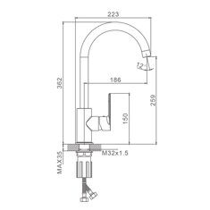 Высота: 36,2 см. Высота излива: 25,9 см. Длина излива: 18,6 см. Картридж: керамика 35 мм. Материал: латунь. Назначение: для раковины. Цвет: черный