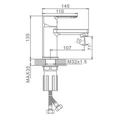 Высота: 15,8 см. Длина излива: 11,3 см. Материал: латунь. Картридж: керамика 35 мм. Способ монтажа: на раковину. Цвет: Хром