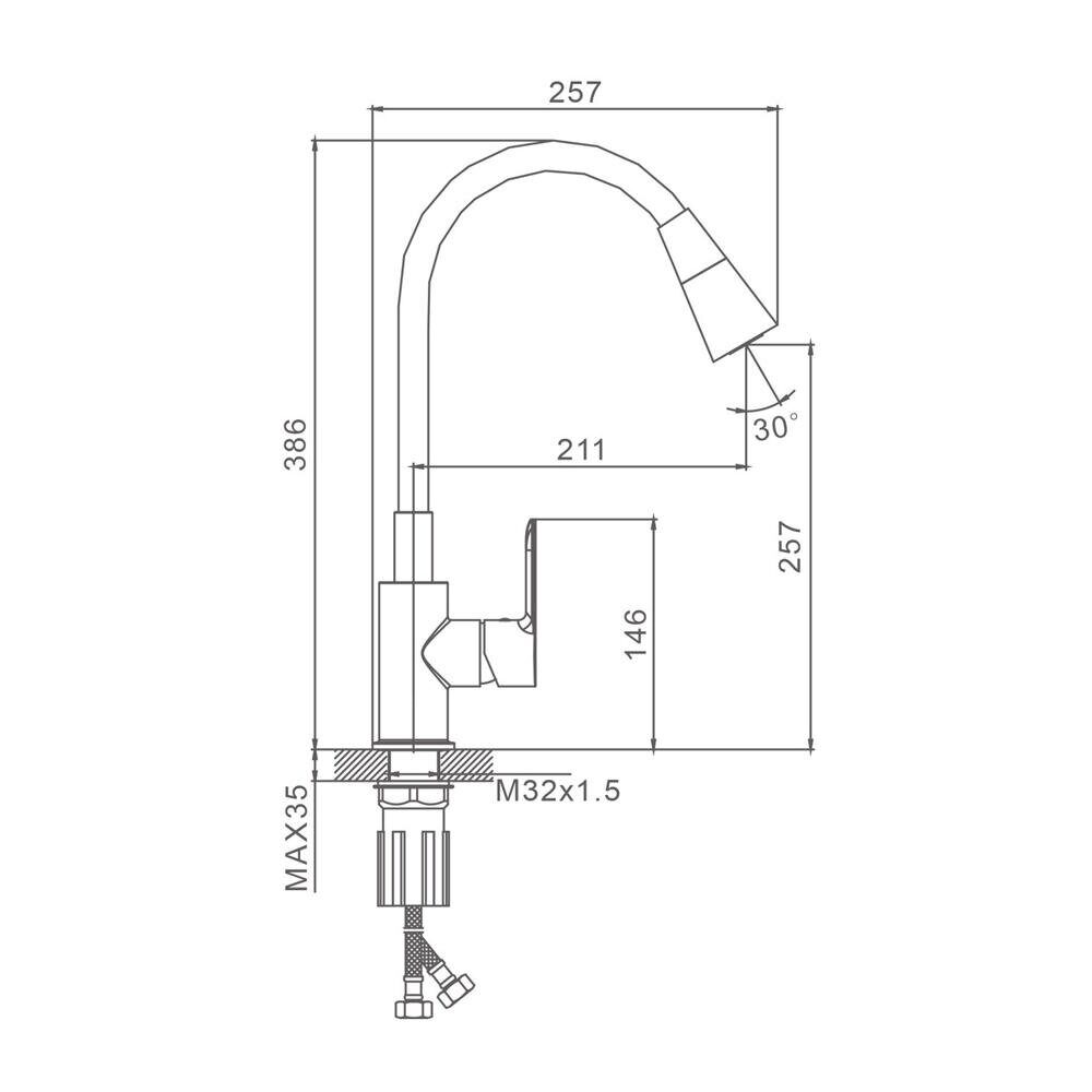 Высота излива, мм 257