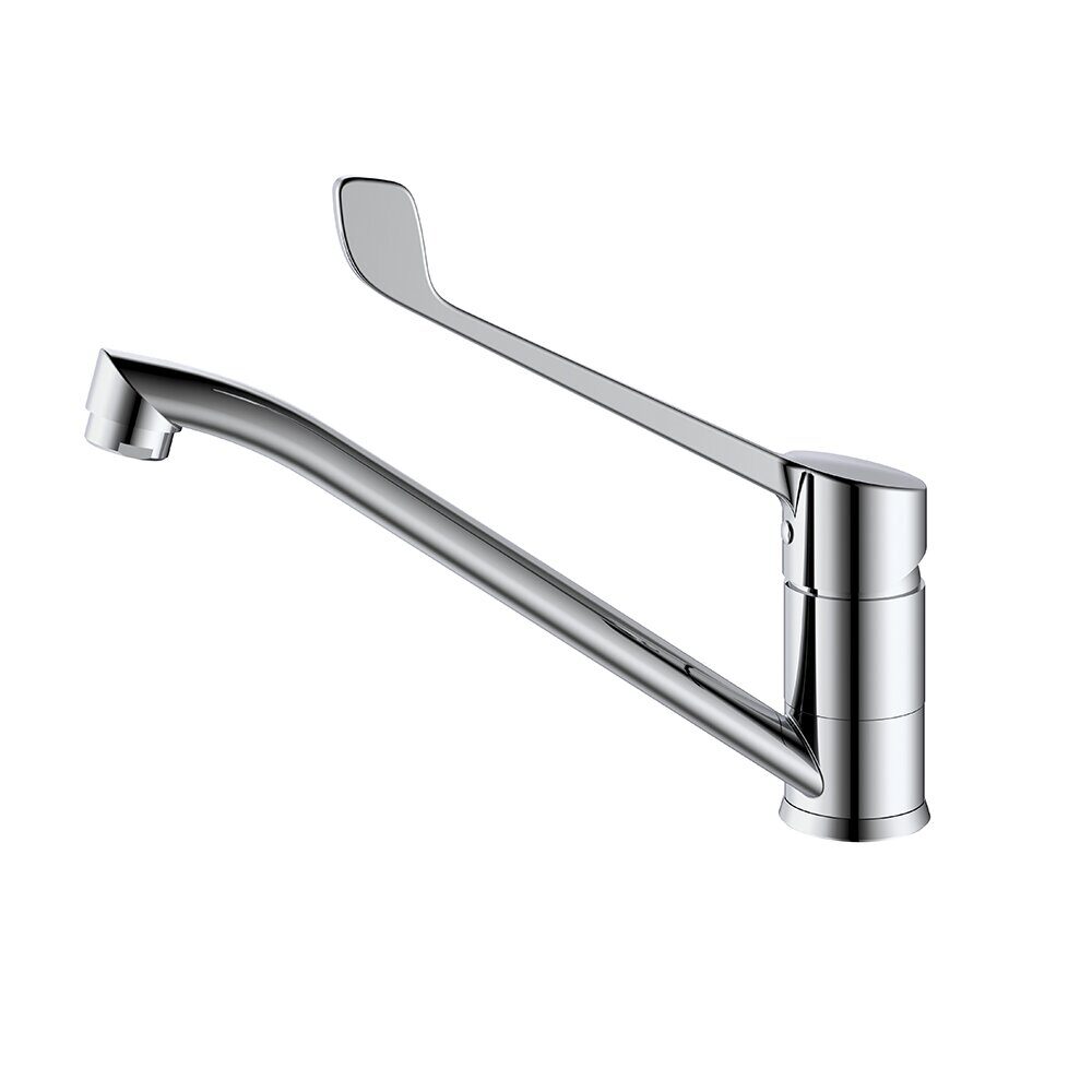 Высота: 19,4 см. Высота излива: 12,2 см. Длина излива: 21,6 см. Материал: латунь. Картридж: керамика 35 мм. Способ монтажа: на одно отверстие. Цвет: Хром