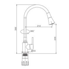 Высота: 38,9 см. Высота излива: 23,5 см. Длина излива: 21,4 см. Материал: нержавеющая сталь. Картридж: керамика 35 мм. Назначение: для раковины. Способ монтажа: на одно отверстие. Цвет: Графит