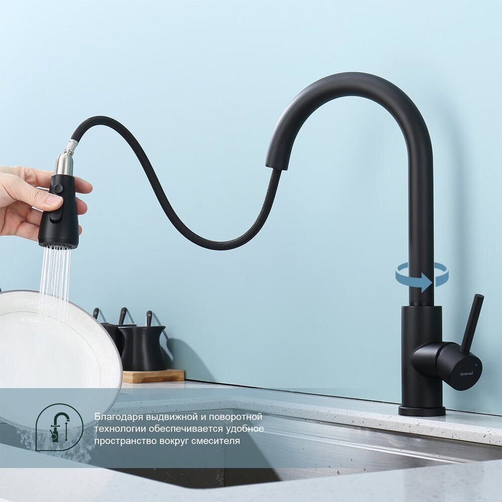 S203.49.06 Splenka Смеситель для кухни с выдвижным изливом, черный