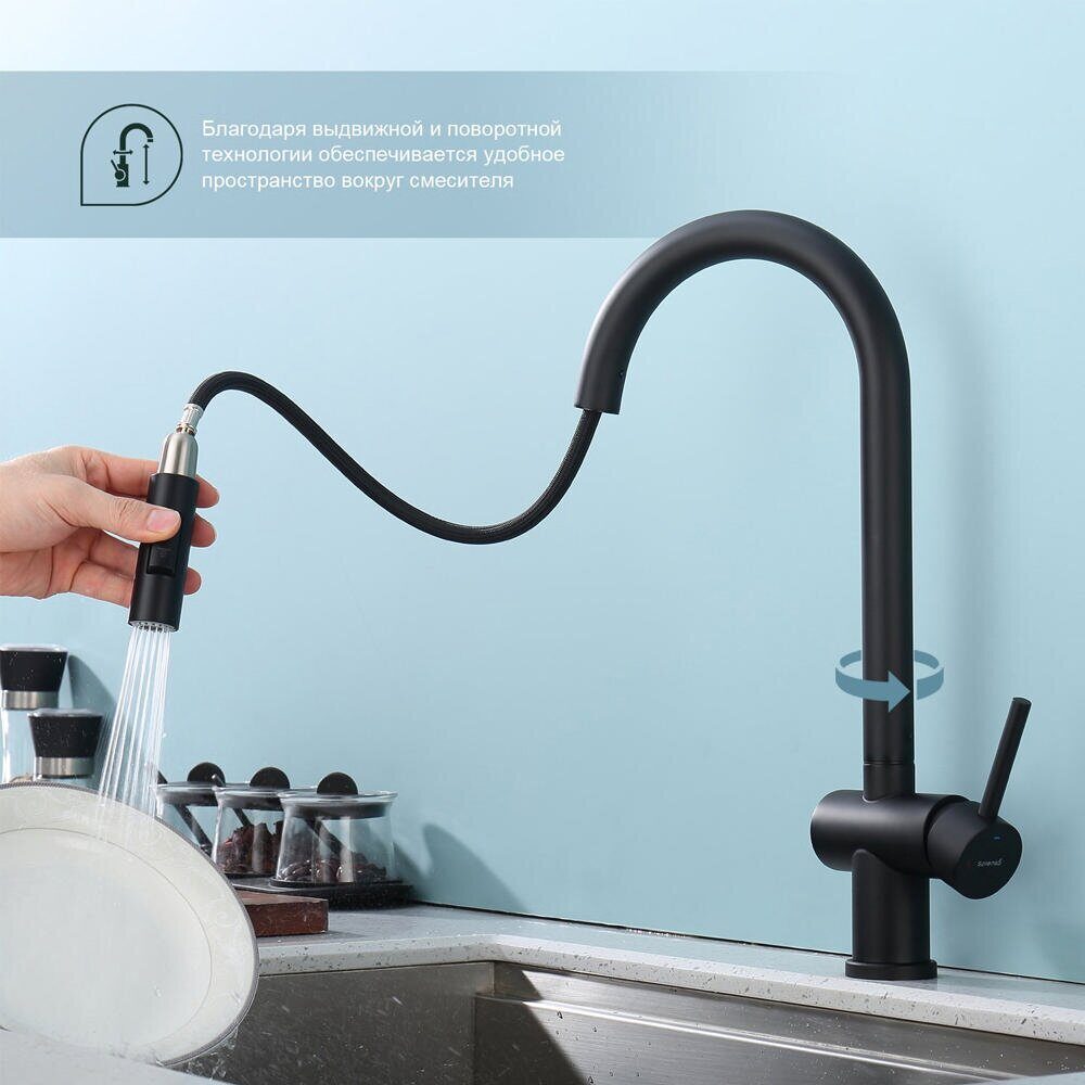 Главная Каталог магазина Сантехника Смесители S204.49.06 Splenka Смеситель для кухни с выдвижным изливом, черный