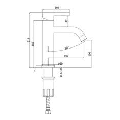 Высота: 21,3 см. Высота излива: 10,6 см. Длина излива 13,9 см. Назначение: для раковины. Способ монтажа: на одно отверстие.  Цвет: Сатин
