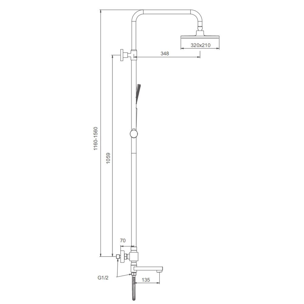 Высота: 156 см. Длина излива: 13,5 см. Длина шланга: 150 см. Назначение: для душа, для ванны. Материал: латунь. Держатель лейки на стойке. Картридж термостатический. Ручная лейка 3 режима. Тропический душ: 320*210 мм. Цвет: Графит.
