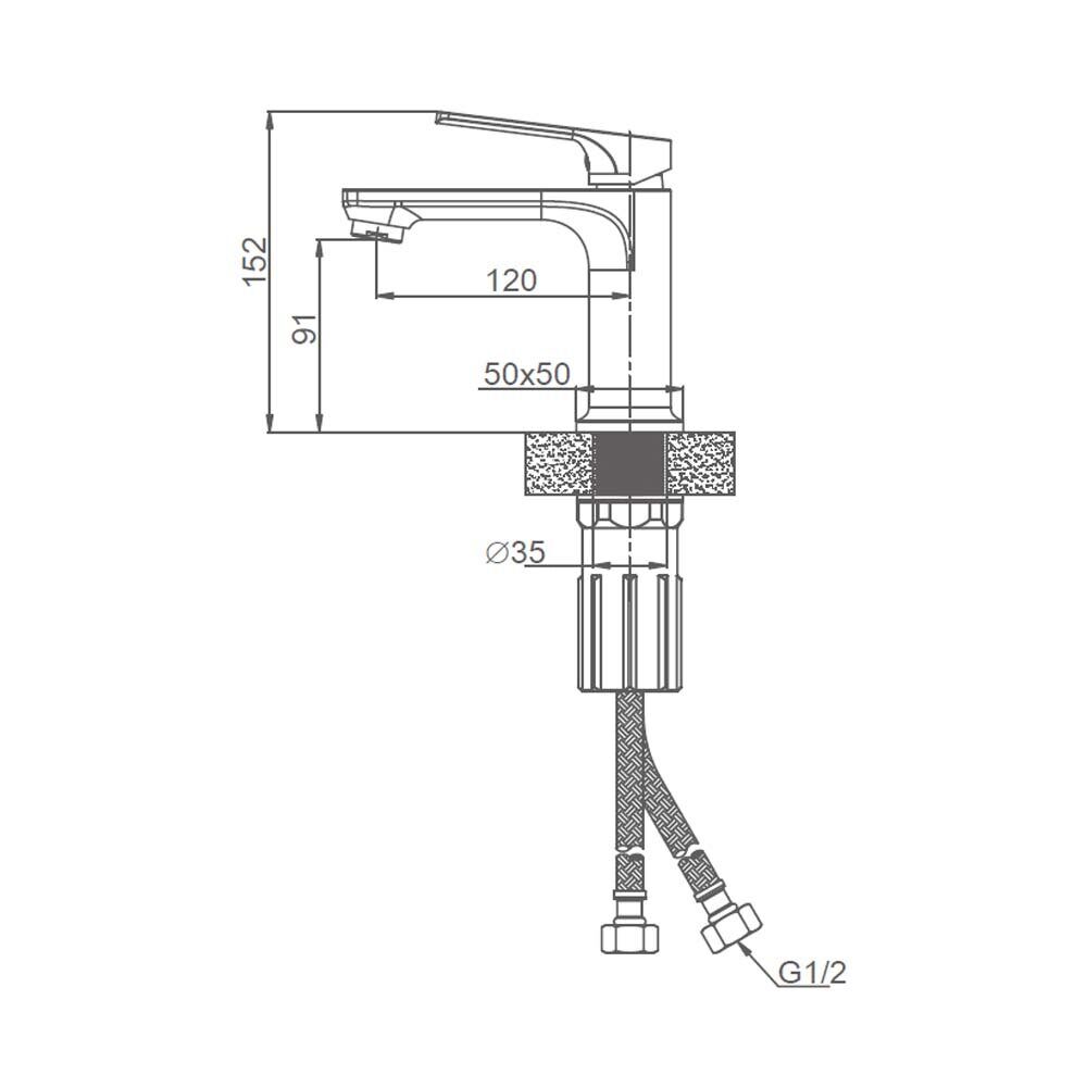 Высота излива: 9,1 см. Длина излива 12 см. Материал: латунь. Назначение: для раковины. Картридж: керамика 26 мм. Способ монтажа: на одно отверстие. Цвет: Черный