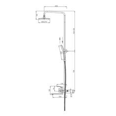 Высота: 144,5 см. Длина шланга: 150 см. Назначение: для душа, для ванны.  Материал: латунь.  Держатель лейки на стене. Картридж керамика 30 мм. Ручная лейка 3 режима. Тропический душ 320*210 мм.  Цвет: Хром.
