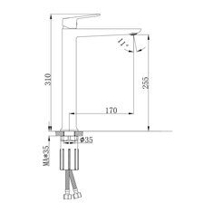 Высота: 31 см. Высота излива: 25,5 см. Длина излива 17 см. Назначение: для столешницы. Способ монтажа: на одно отверстие. Цвет: Черный