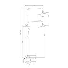 Высота: 135 см. Длина шланга: 150 см. Назначение: для душа, для ванны. Материал: латунь. Держатель лейки на стойке. Картридж керамика 30 мм. Ручная лейка 3 режима. Тропический душ 25 см. Цвет: Хром.