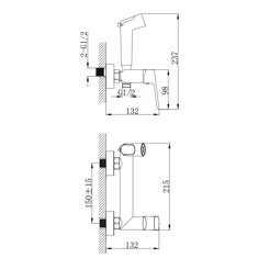 Глубина: 13,2 см. Высота: 23,7 см. Ширина: 21,5 см. Цвет: хром. Материал: латунь. Шланг: 1,2 м. Картридж: керамика 25 мм. Лейка 1 режим.