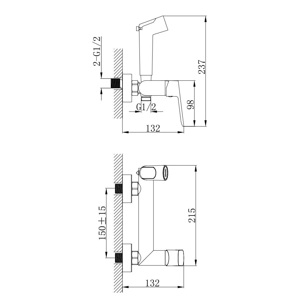 Монтаж на стену, на 2 отверстия Тип подводки жесткая