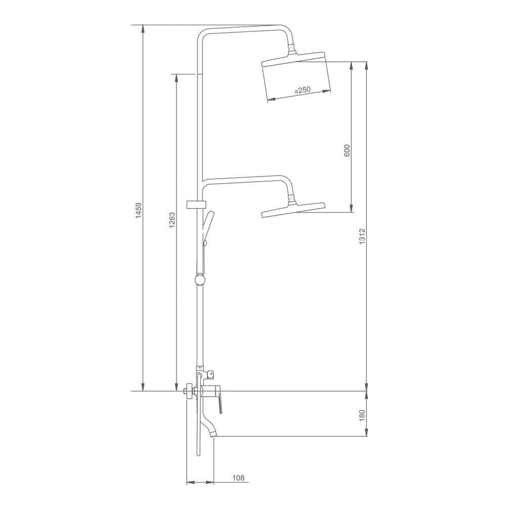 Комплектация: полка, зеркало, колонна, излив, душевая стойка с 3х функциональным душем ф120мм.