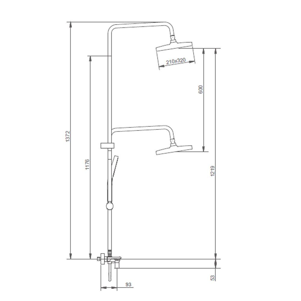 Высота: 148 см. Длина шланга: 150 см. Назначение: для душа, для ванны. Материал: латунь. Держатель лейки на стойке. Картридж керамика 30 мм. Ручная лейка 3 режима. Тропический душ 320*210 см. Цвет: Графит.