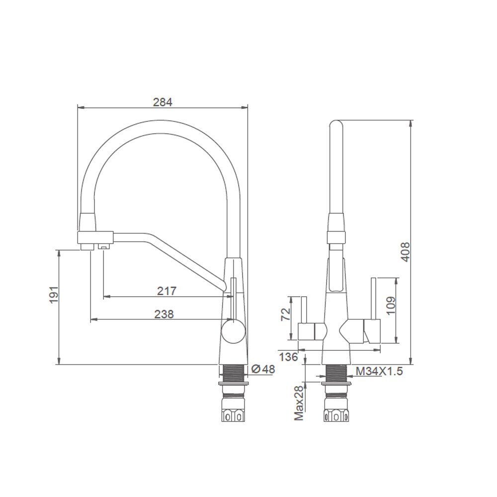 Высота: 40,8 см. Высота излива: 19,1 см. Длина излива: 23,8 см. Материал: нержавеющая сталь. Картридж: керамика 35 мм. Назначение: для раковины. Цвет: Серый