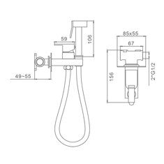 Высота: 18,2. Глубина: 9 см. Ширина: 13,5 см. Цвет: Хром. Материал: латунь. Шланг: 1,2 м. Картридж: керамика 25 мм. Лейка 1 режим. Способ монтажа: на стену.