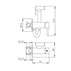 Высота: 17,3 см. Длина шланга: 1,2 м. Картридж: керамика 25 мм. Материал: латунь. Способ монтажа: на стену.  Цвет: Черный