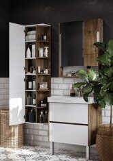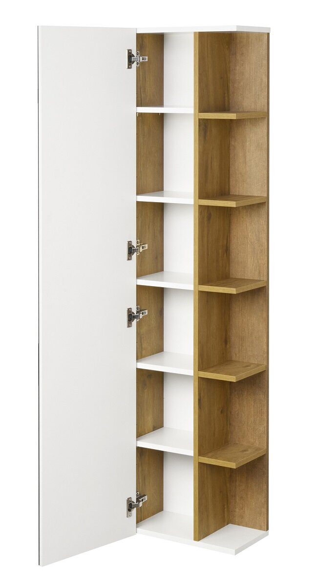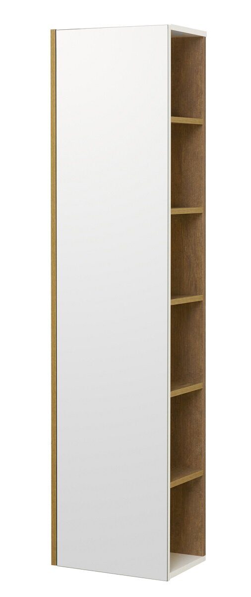 Сканди шкаф - пенал подвесной с зеркалом белый/дуб рустикальный для ванной комнаты Aquaton