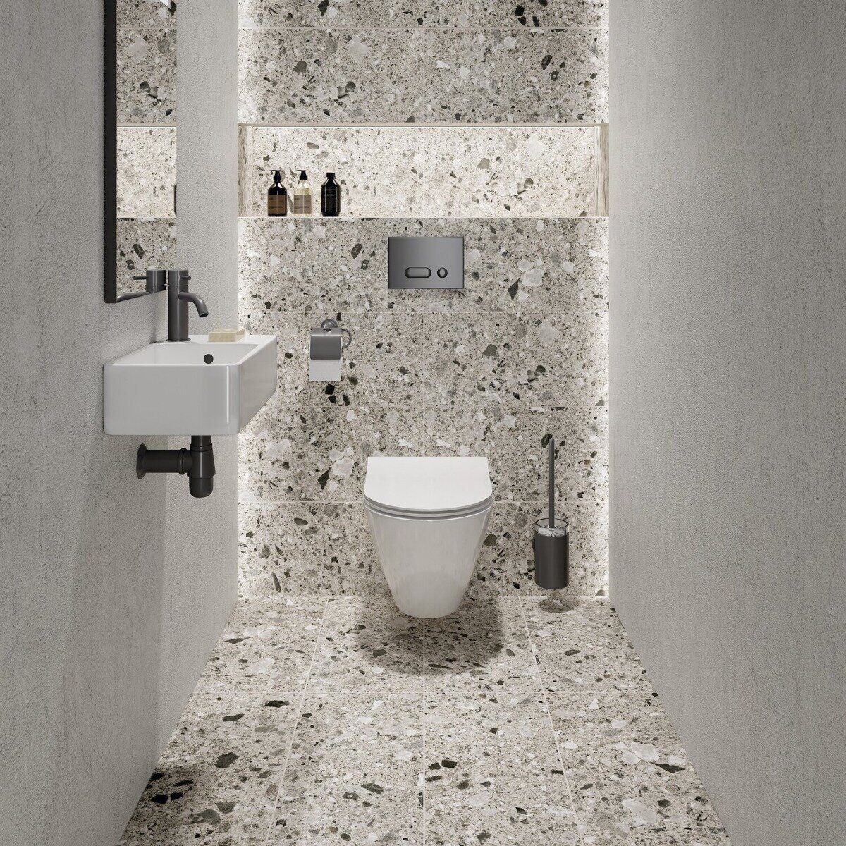Размер: 29.7х59.8см. Цвет: серый, под камень. Матовый. Отпускается кратно упаковке: 1,77м2/10шт