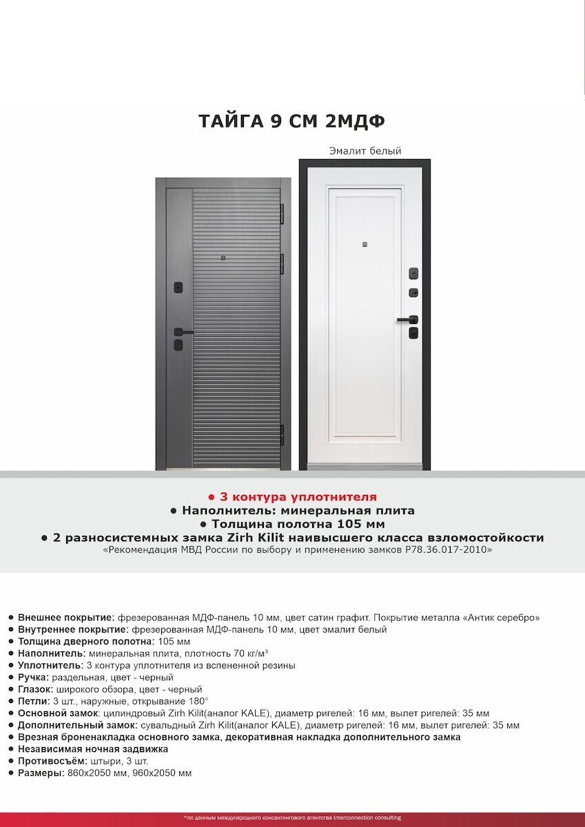 Тайга 9см 2МДФ дверь входная Антик серебро, МДФ Эмалит белый
