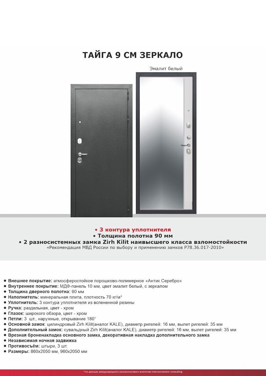 Тайга 9см Зеркало дверь входная Антик серебро, Эмалит белый