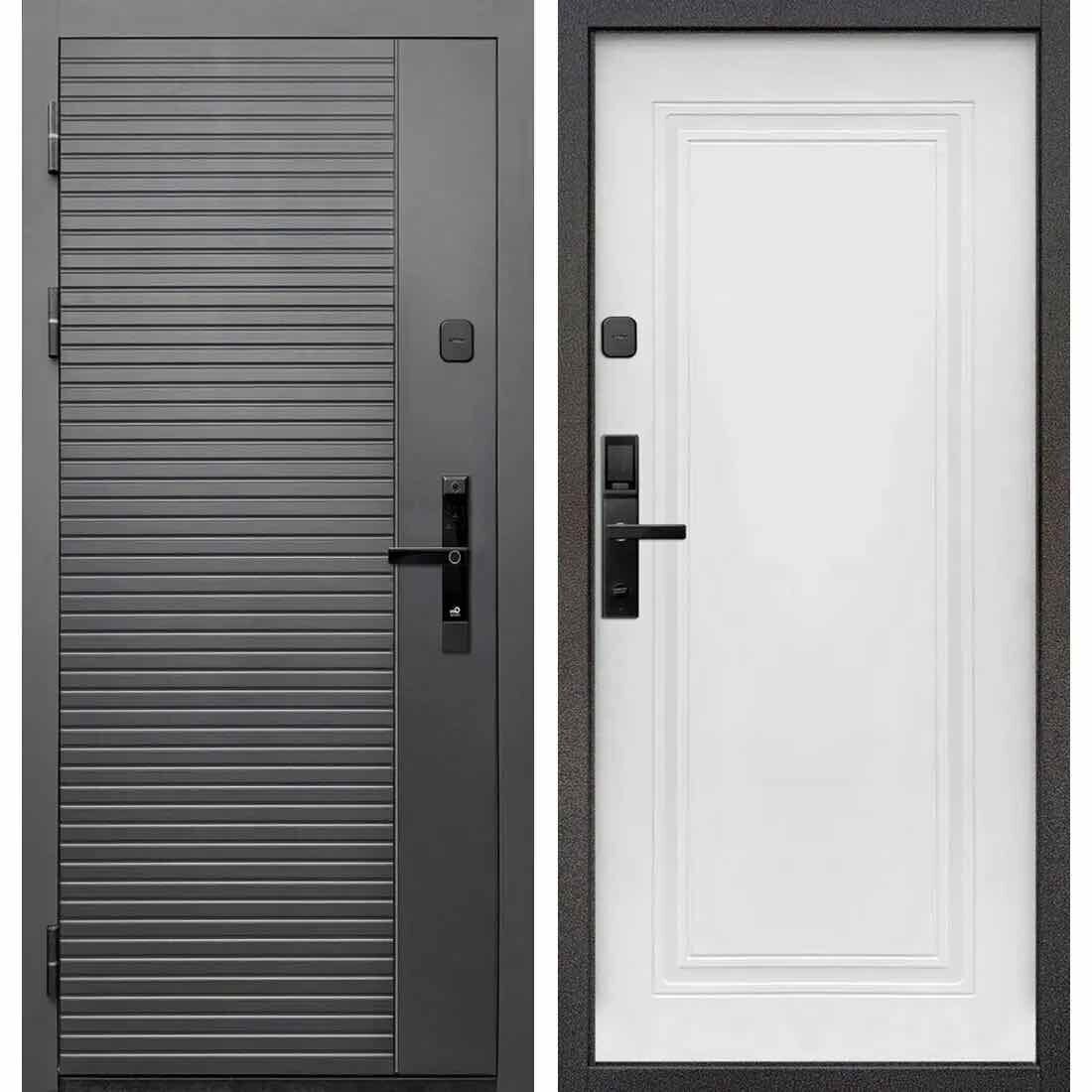 FerroniТайга-Е 10см 2МДФ дверь входная Антик Серебро, МДФ Сатин Графит, МДФ Эмалит белый
