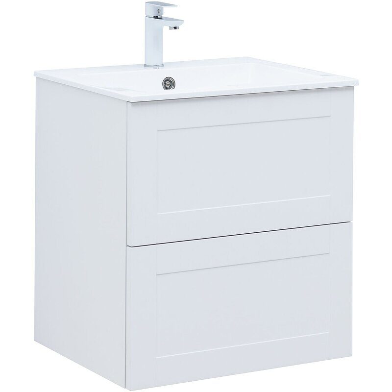 Терра 60 тумба белая матовая для ванной комнаты с раковиной-столешницей Электра 60 Aquanet