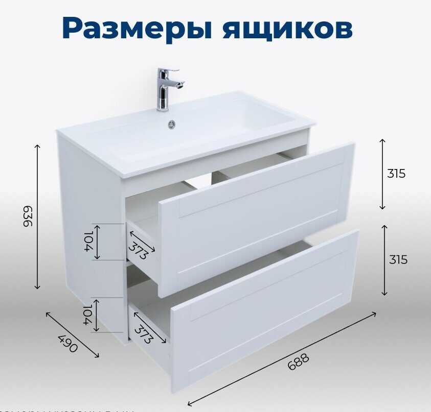 Размер: 88,8х49х63,6 см. Цвет: белый матовый. Комплект: 2 ящика, раковина-столешница Электра 90