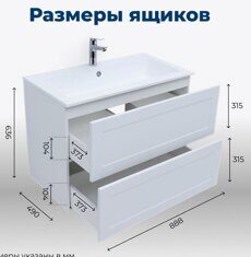 Размер: 88,8х49х63,6 см. Цвет: белый матовый. Комплект: 2 ящика, раковина-столешница Электра 90