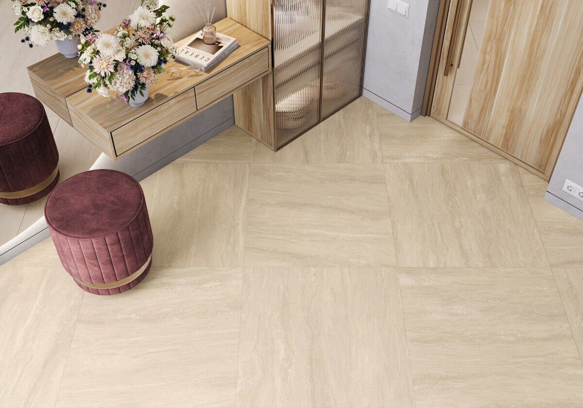 Нежно-бежевые оттенки травертина с изящным, ненавязчивым узором природного камня помогут сформировать уютную и комфортную атмосферу. Эта коллекция носит имя итальянского региона Тиволи, славящегося своим солнечным камнем. Спокойный дизайн идеально вписывается в современные тренды отделки интерьеров. Плитка доступна в формате 600х1200 мм и выполнена с рельефной текстурой.