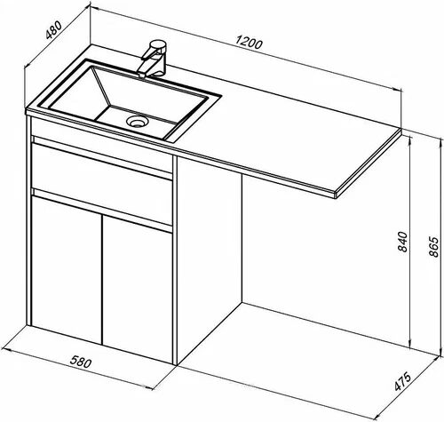 Персона 120 левая раковина-столешница для монтажа над стиральной машиной Aquanet