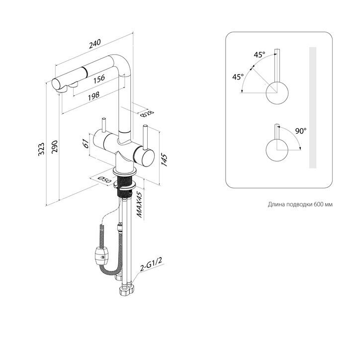 • Удобное управление водопроводной и фильтрованной водой с помощью двух отдельных ручек.