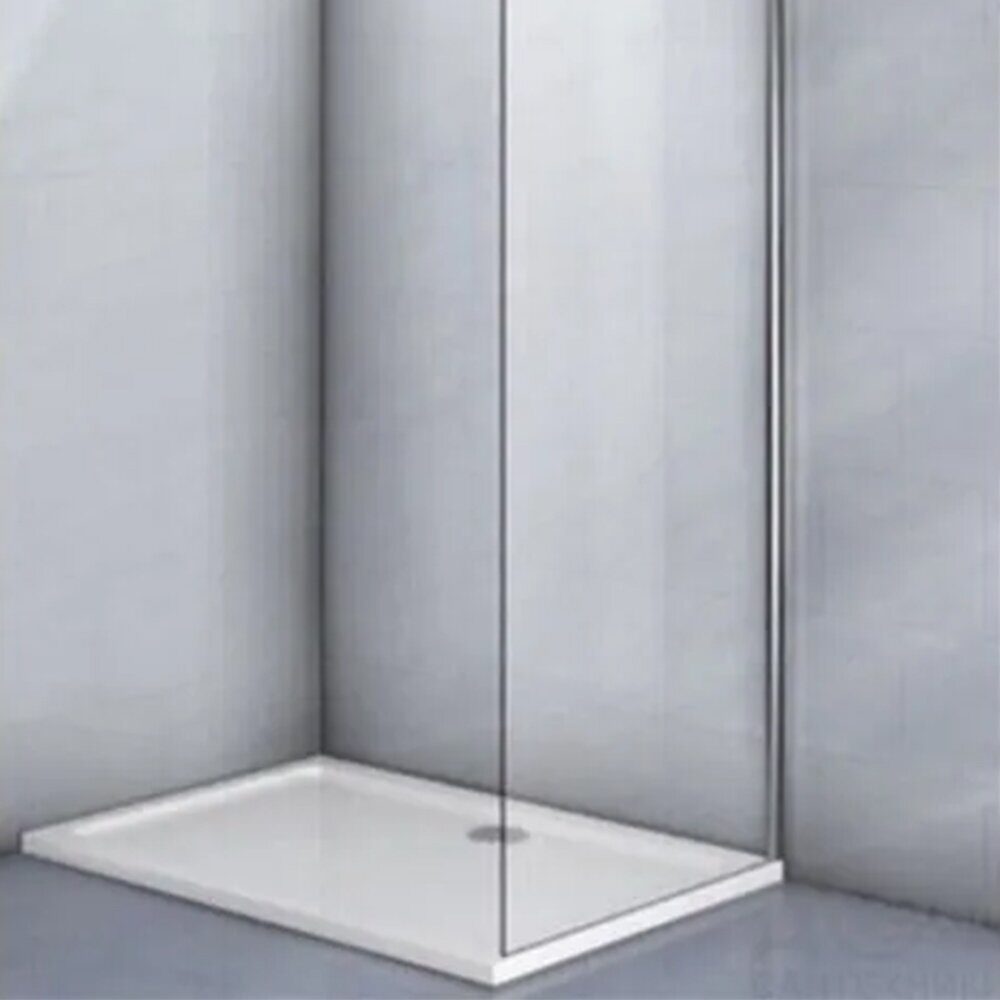 Размеры: 90х190 см. Прозрачное стекло 6 мм. Профиль: хром, анодированный алюминий. Фиксированная боковая панель без верхнего и нижнего профиля
