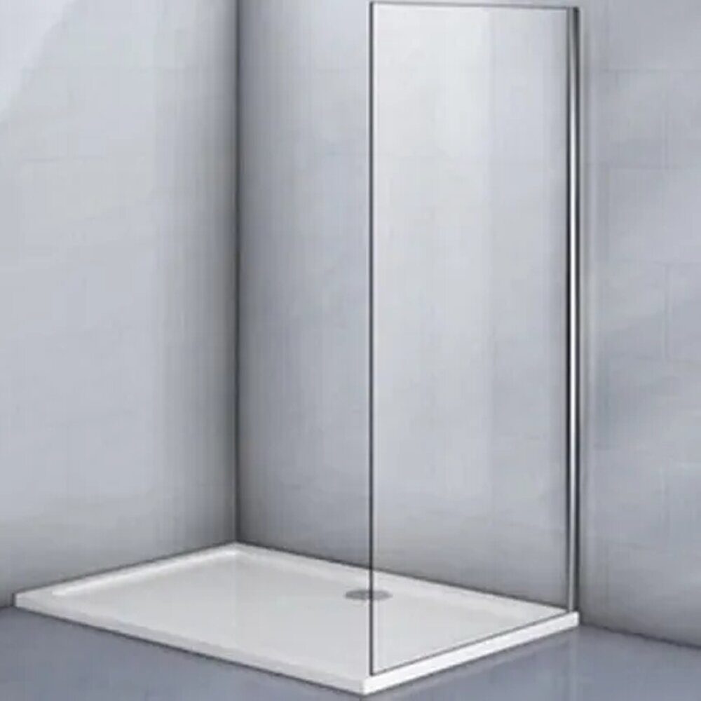 Размеры: 80х195 см. Прозрачное стекло 8 мм. Профиль: хром, анодированный алюминий. Фиксированная боковая панель без верхнего и нижнего профиля