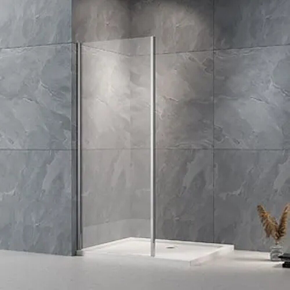 Размеры: 70х195 см. Прозрачное стекло 6 мм. Профиль: хром, анодированный алюминий. Фиксированная боковая панель без верхнего и нижнего профиля