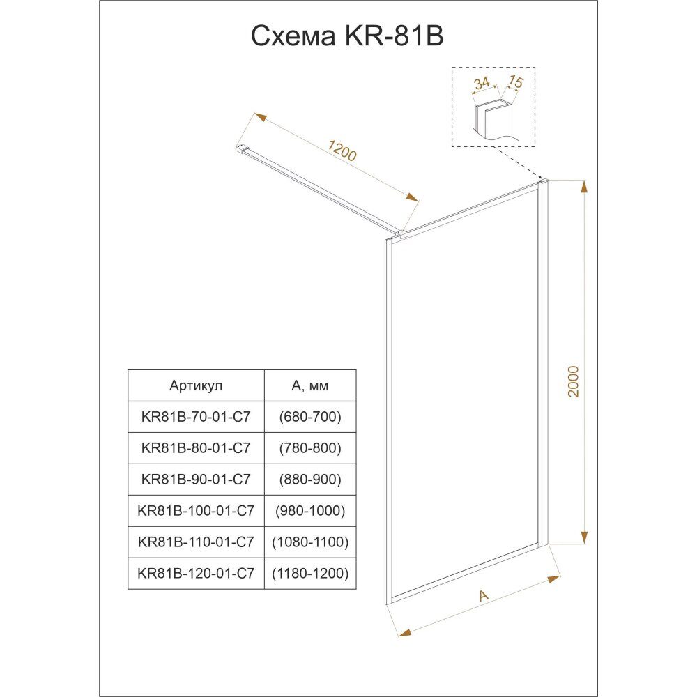 Veconi KR81-70-01-C7 душевая перегородка, 70х200 см, профиль хром