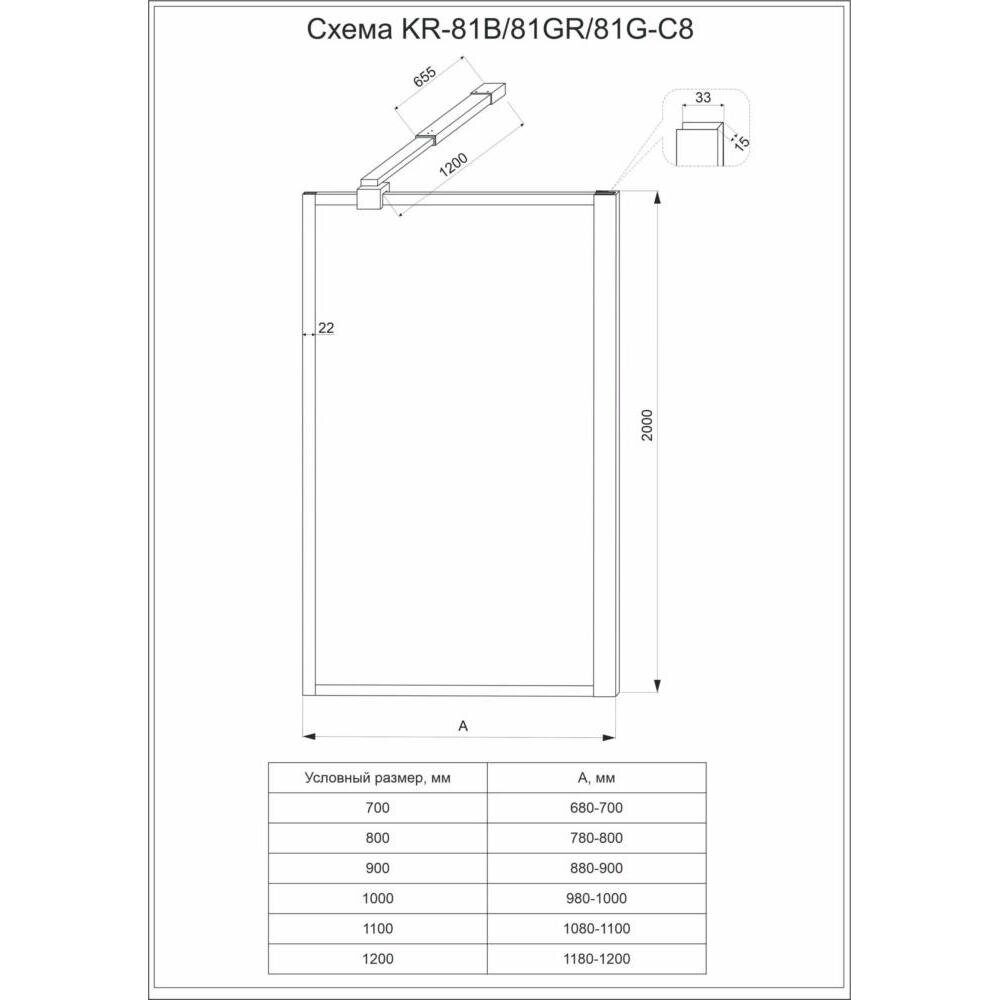 VeconiVeconi KR81G-100-01-C8 душевая перегородка, 100х200 см, профиль брашированное золото