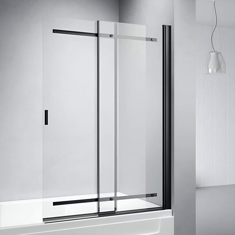 Размеры: 100х140 см. Прозрачное стекло 4 мм. Профиль: черный, анодированный алюминий. Крепление: на борт ванны. Шторка на ванну раздвижная/распашная
