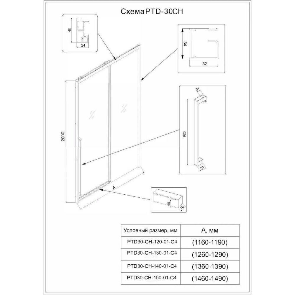 Veconi PTD30 душевая дверь раздвижная 149х200 см, профиль хром
