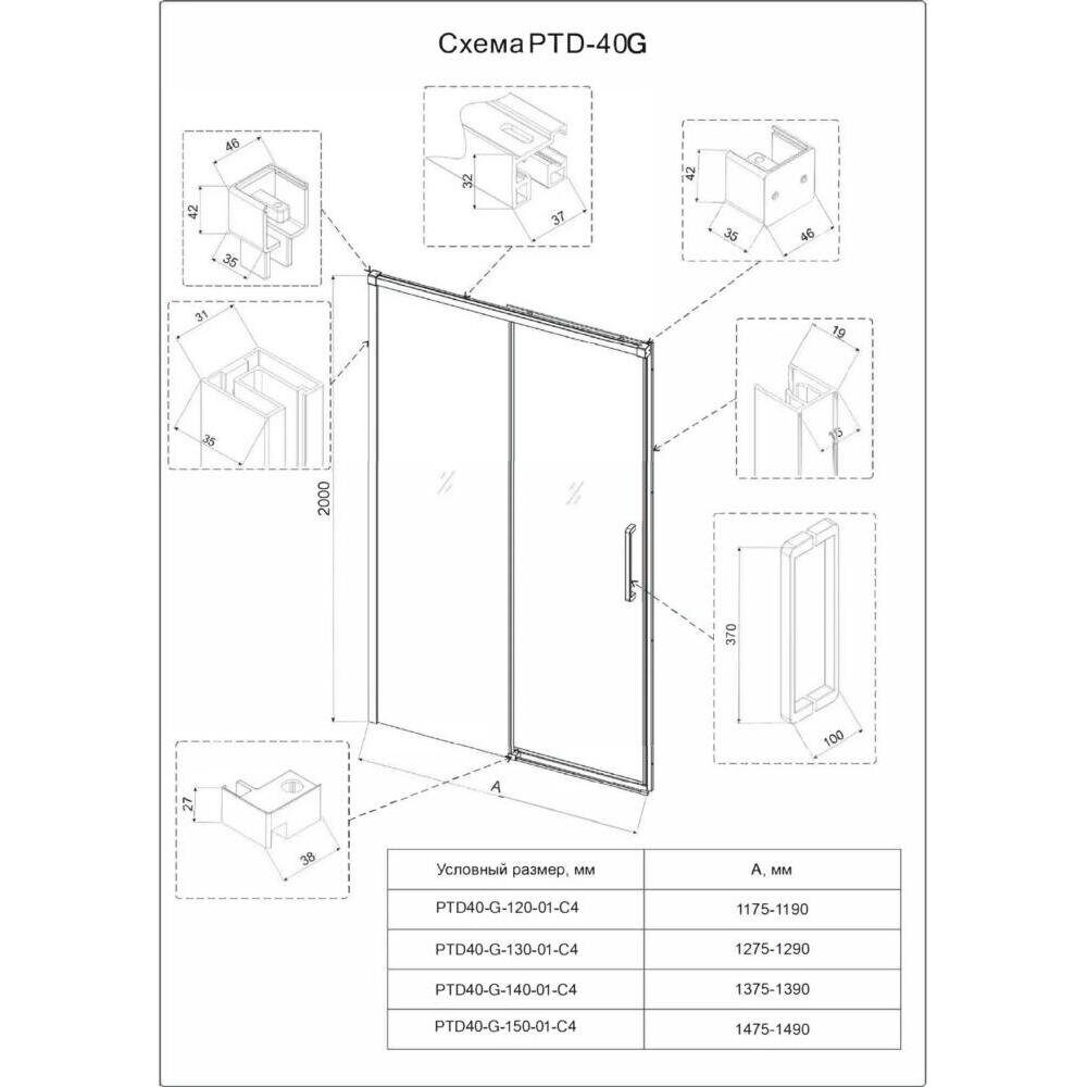 Veconi PTD40 душевая дверь раздвижная 139х200 см, профиль брашированное золото