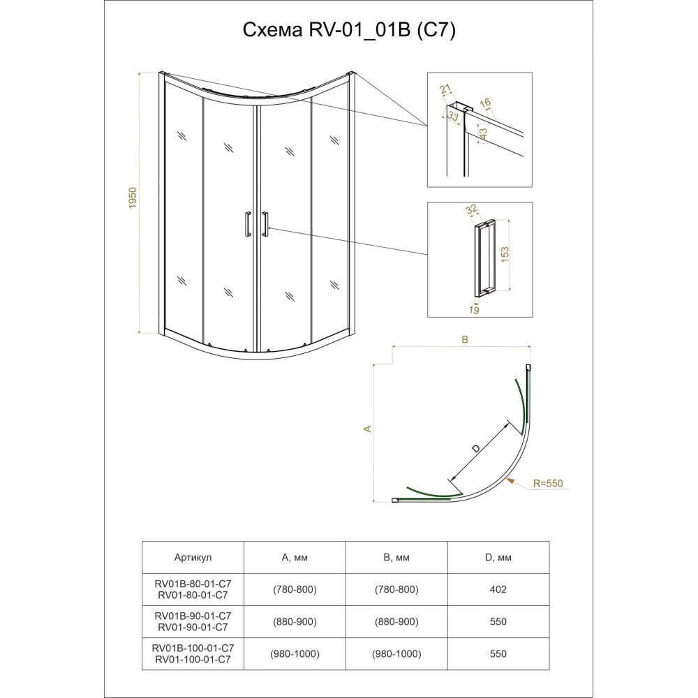 Veconi RV01-100-01-C7 душевой угол, 100х100x195 см, дверь раздвижная, профиль хром