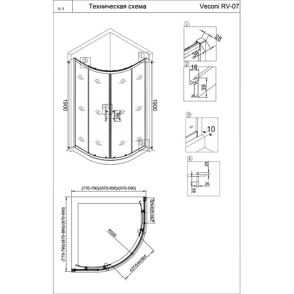 Veconi RV07-100PL-01-19C3 душевой угол 100х100x190 см, дверь раздвижная, профиль хром