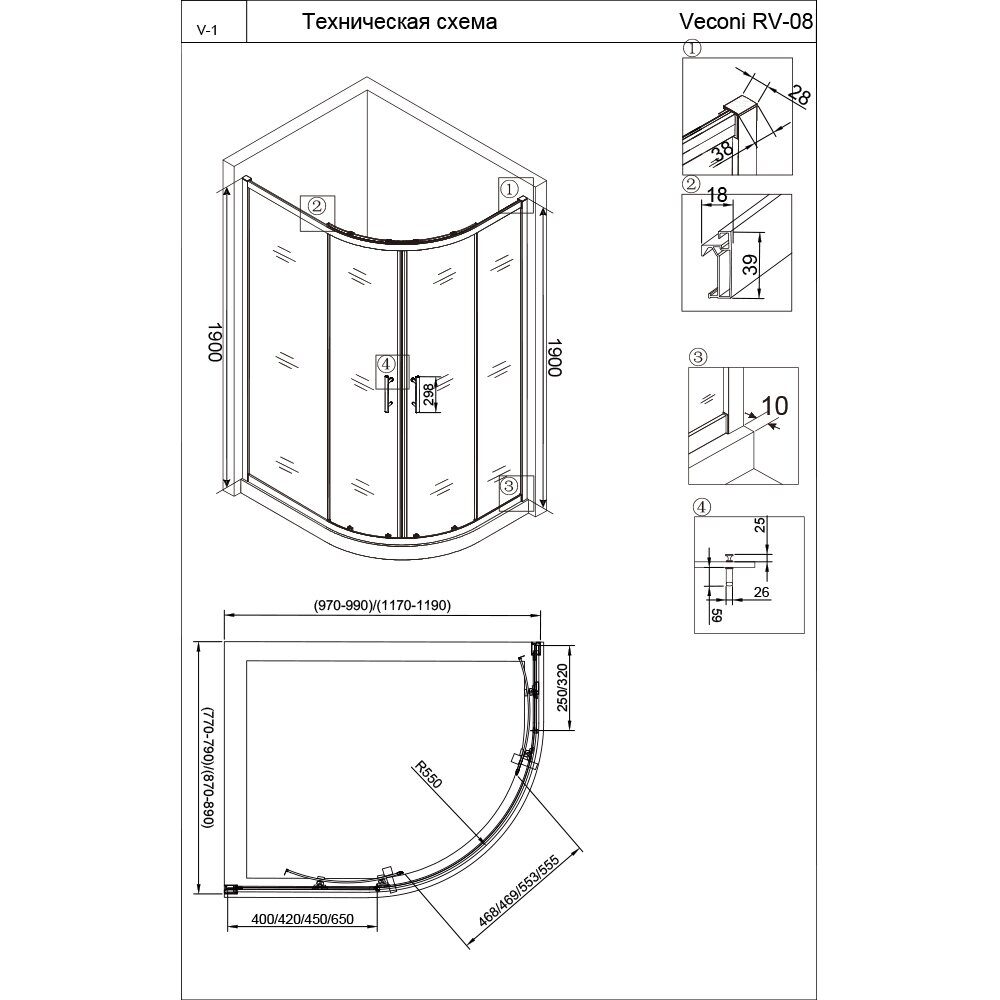 Veconi RV27B-11080-01-C8 душевой угол, 110х80x190 см, дверь раздвижная, профиль черный