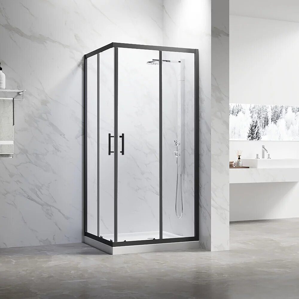 Veconi RV27B-8080-01-C8 душевой угол, 80х80x190 см, дверь раздвижная, профиль черный