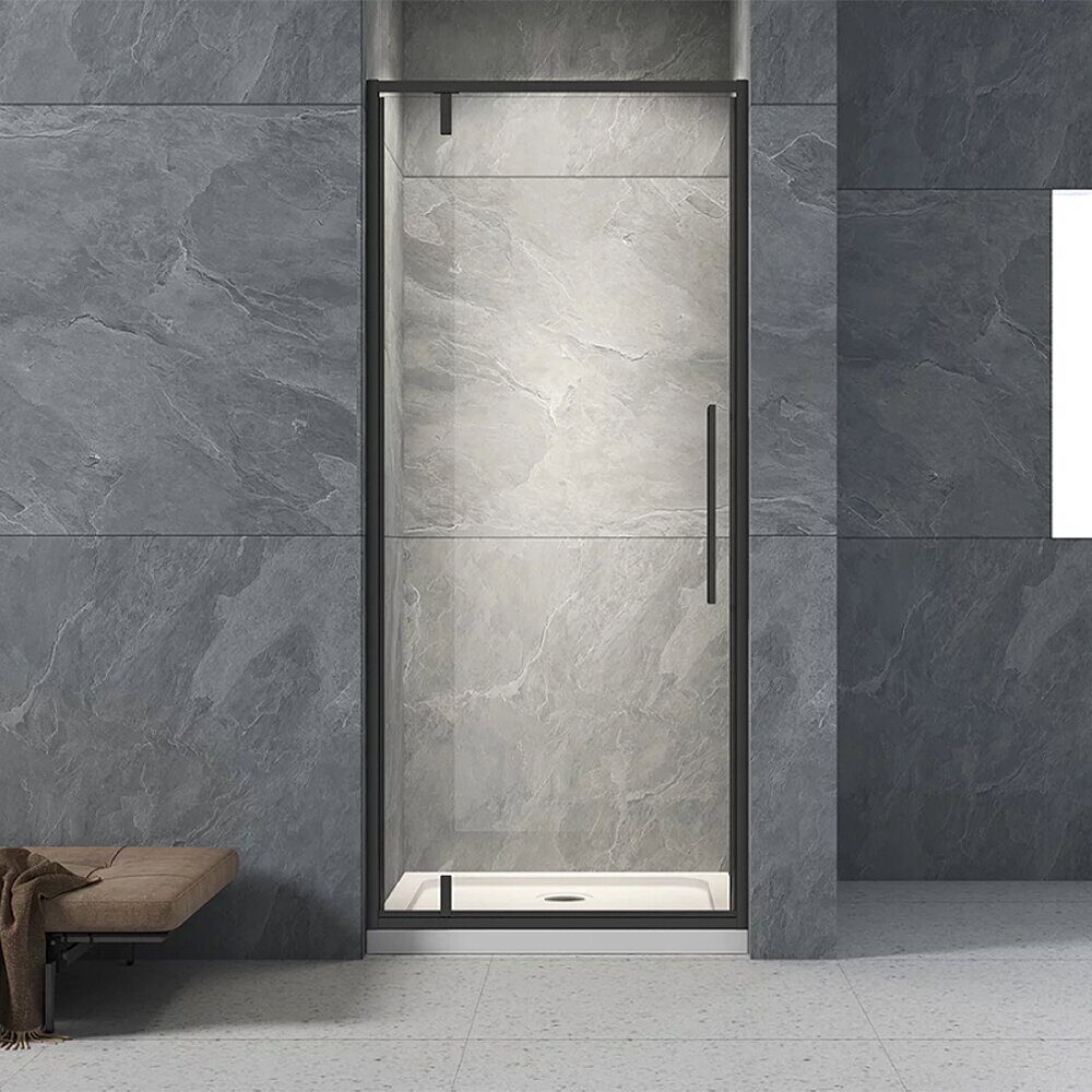 Размеры: 90х195 см. Стекло: прозрачное, 6 мм. Покрытие: матовое. Профиль: черный, анодированный алюминий. Дверь: распашная. Ширина входа: 753 мм. Дверь открывается в обе стороны.