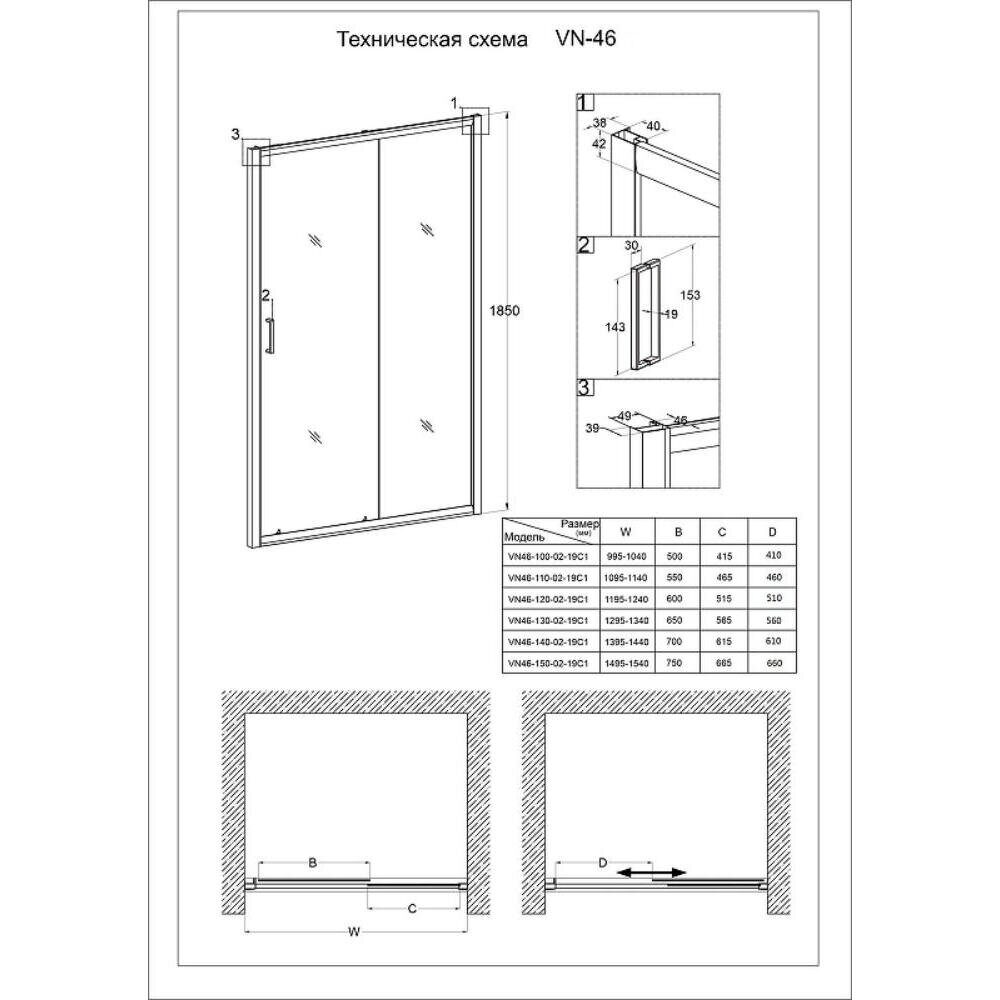 Veconi VN46 душевая дверь раздвижная 120х185 см, профиль хром