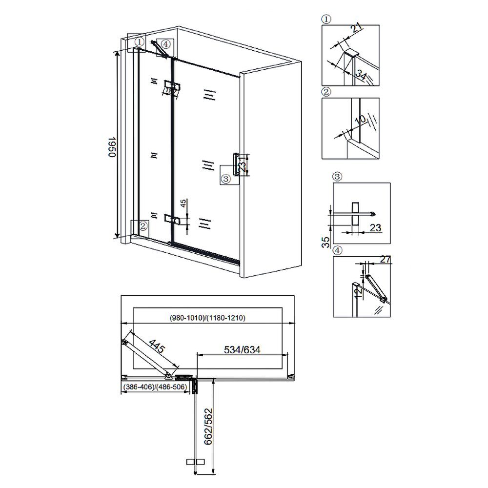 Петли изготовлены из металла высокой плотности и имеют систему блокировки, Магнитные уплотнители, Стабилизационная штанга стекло-стена