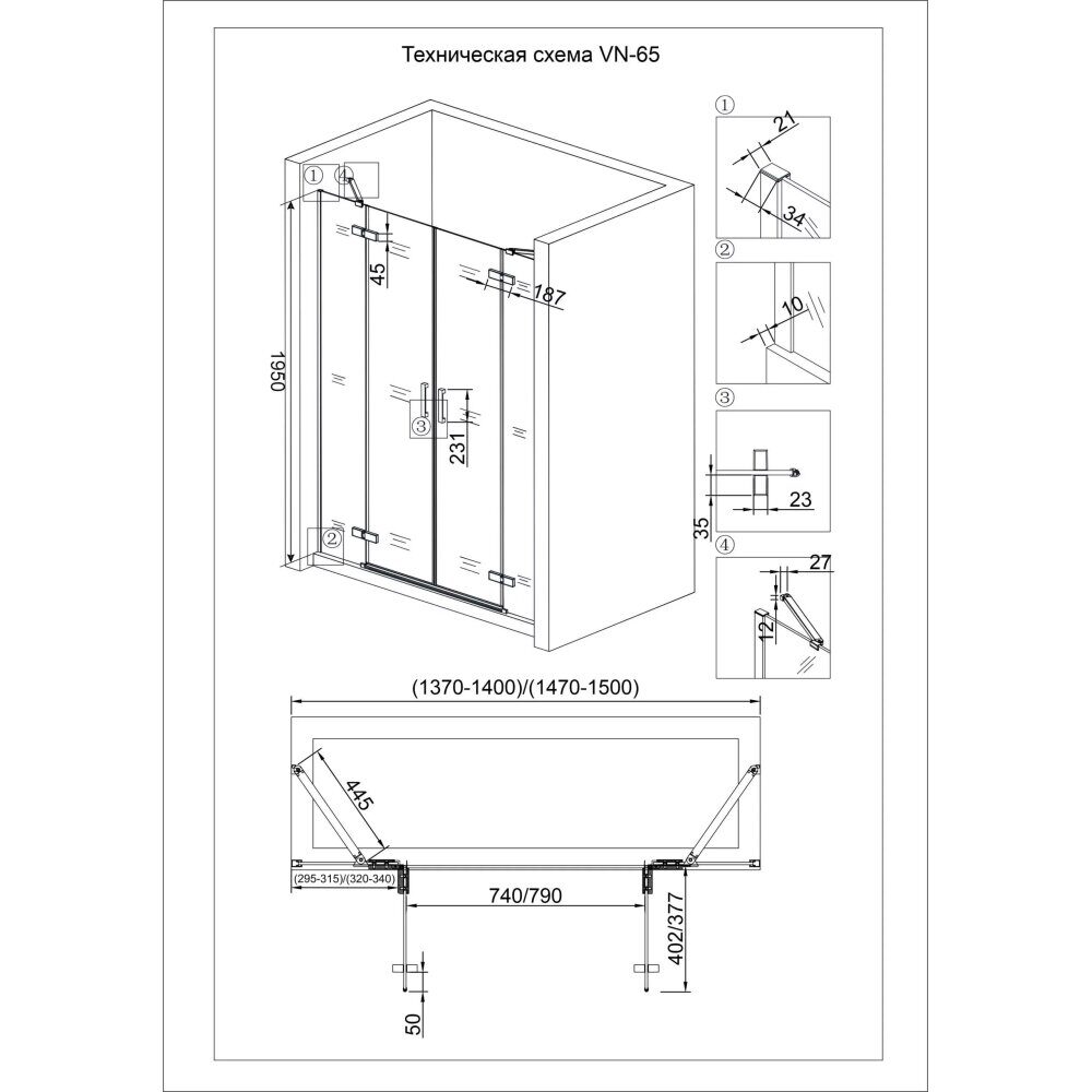 Петли изготовлены из металла высокой плотности и имеют систему блокировки, Магнитные уплотнители, Стабилизационная штанга стекло-стена из нержавеющей стали