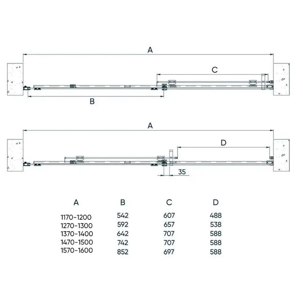 Двери: универсальная установка двери, регулируемые стальные двойные ролики, раздвижная дверь и одно неподвижное стекло
