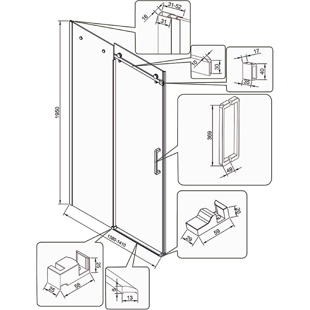 Двери: универсальная установка двери, регулируемые двойные ролики, Раздвижная дверь и одно неподвижное стекло