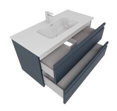 Корпус изготовлен из влагостойкого ЛДСП, фасады из ЛМДФ с последующей покраской в 5 слоев с технологией УФ-отверждения, тумба устойчива к воздействию влаги и легко чистится.